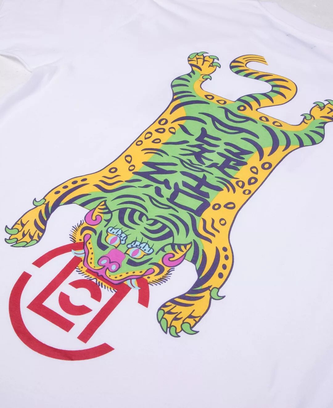 为了纪念这个具有特别意义的时刻,品牌主理人陈冠希专门为巴黎时装周静态展设计了一款T恤,此T恤独特的印花设计融合了中国设计元素,向雄伟和力量致敬,而大胆的龙虎纹代表着力量和荣誉,突显了CLOT长期从中国文化中汲取的灵感。这款白色限量版T恤将通过京东独家销售,而特别黑色版将不公开发售,只能通过参与京东FANBOX频道站内活动获取。