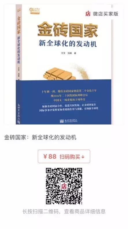 我们将送出《金砖国家:新全球化的发动机》(BRICS: The Engine for New Globalization)中文和英文版各三本。