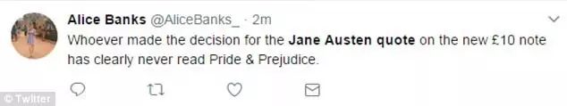 此外,钞票上引用奥斯汀的一句名言也成为了简迷吐槽的重灾区。