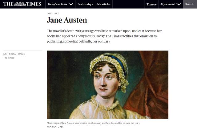 英国《泰晤士报》也在她逝世200周年后发表讣告(obituary)来纪念这位作家,这是非常罕见的。