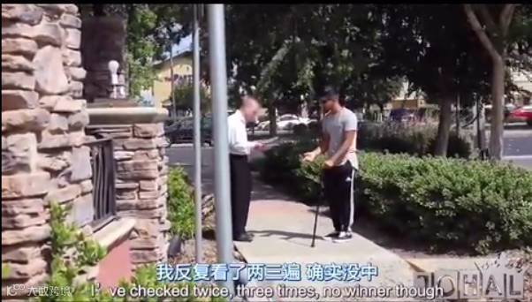 这时Johal才告诉他,自己其实并不是盲人。男子听了后,立马丢掉彩票,咒骂了一句,匆匆离开了。