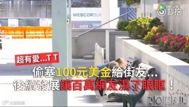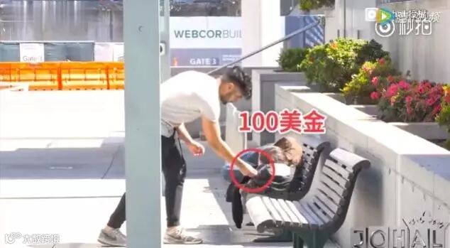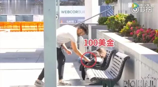 在这个街头实验里,Johal趁一个流浪汉睡着时,偷偷塞给他100美金。