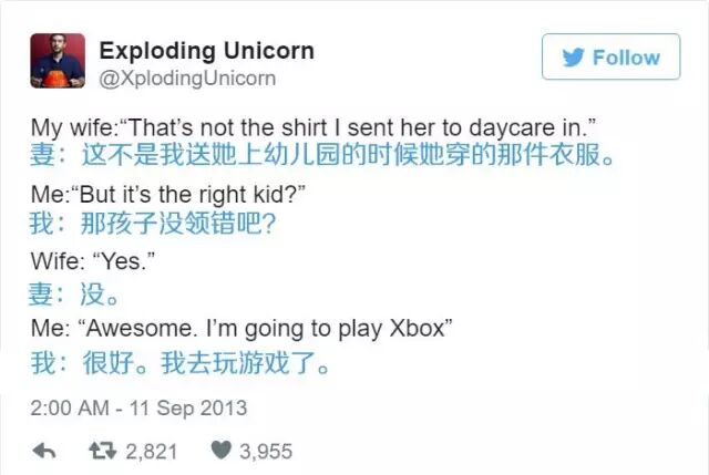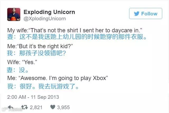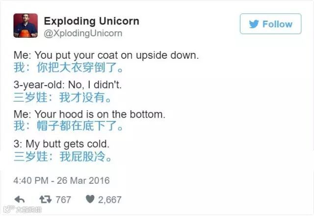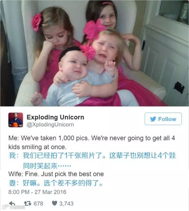 我们来看几条他的推特,感受下这欢乐的一家子吧……