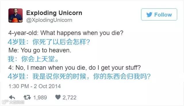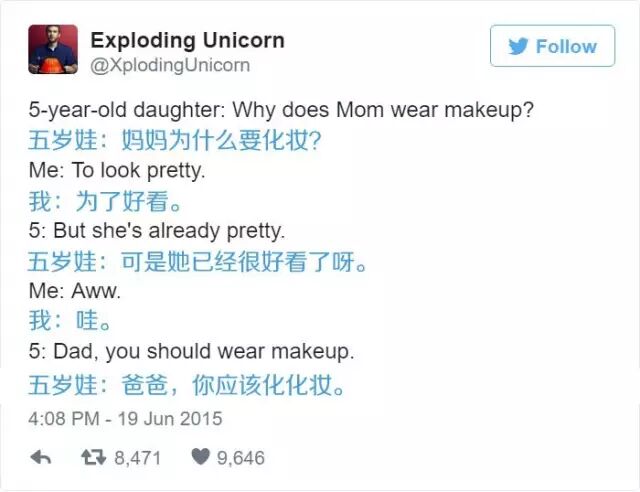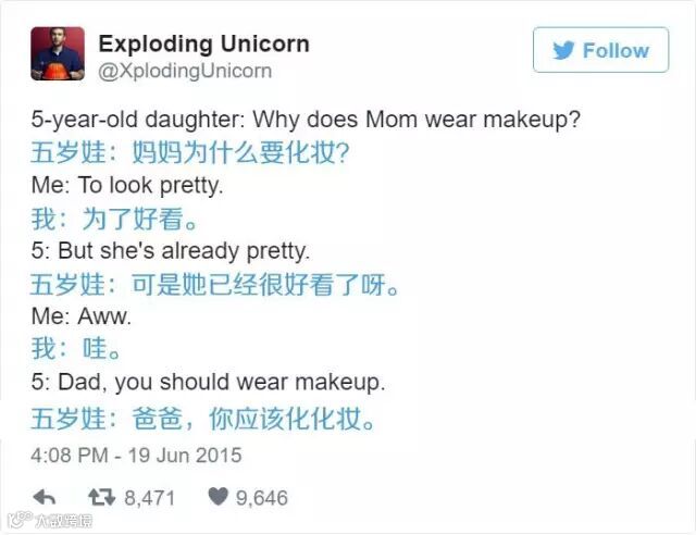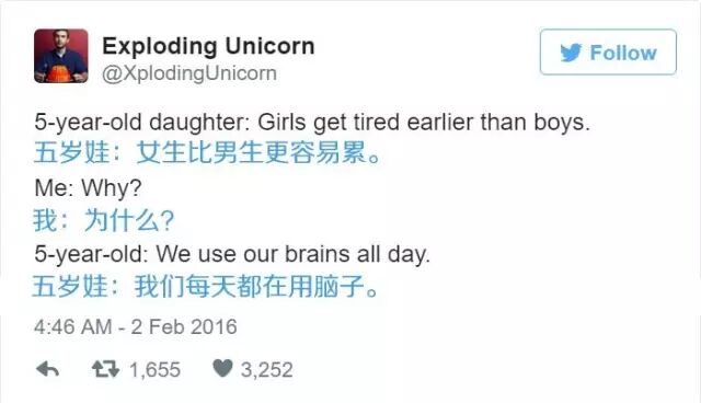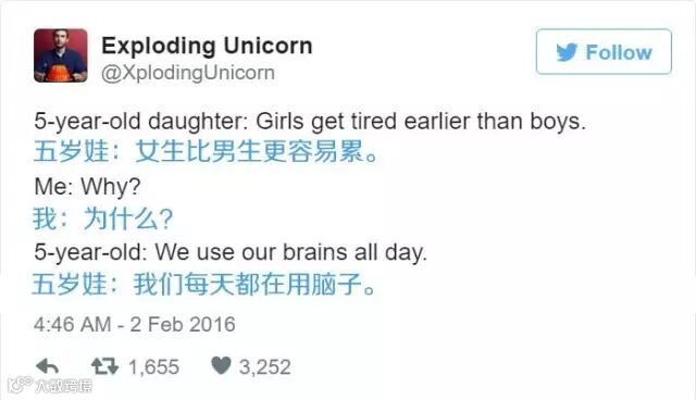 美国就有一位名叫James Breakwell的调皮老爸,他每天把自己和四个不到6岁女儿的对话发在推特上,成了网红。