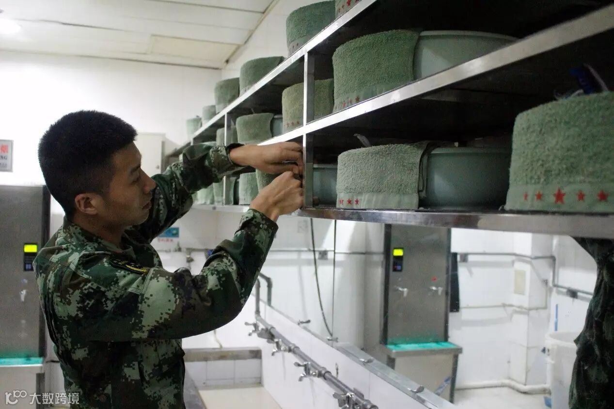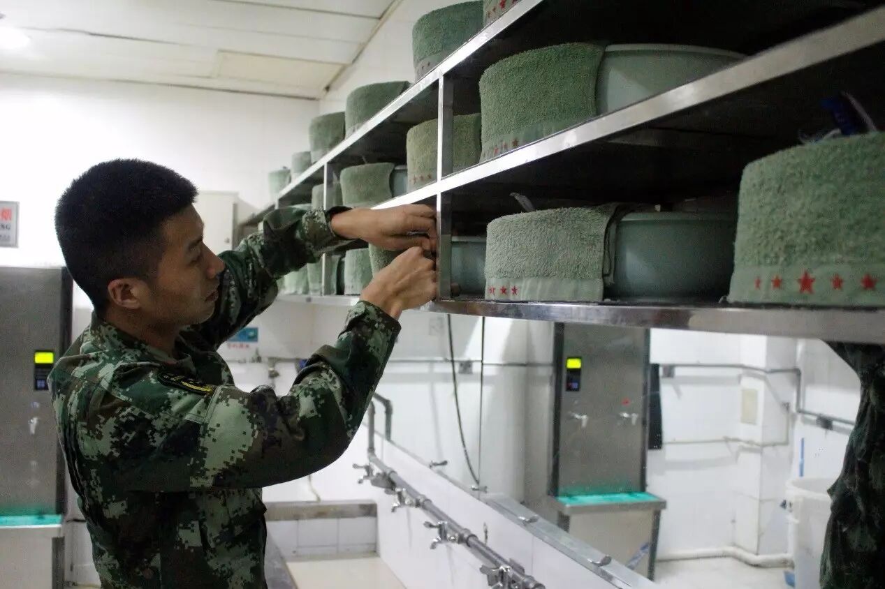 在部队,每次洗完脸都得仔细整理脸盆,因为部队有明确的内务标准,时时刻刻约束着我们。你看,每个脸盆内物品摆放方向都是一样的,毛巾也是按标准折叠的。