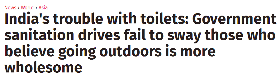《华盛顿邮报》也曾报道过印度人在上厕所方面的习惯和问题。