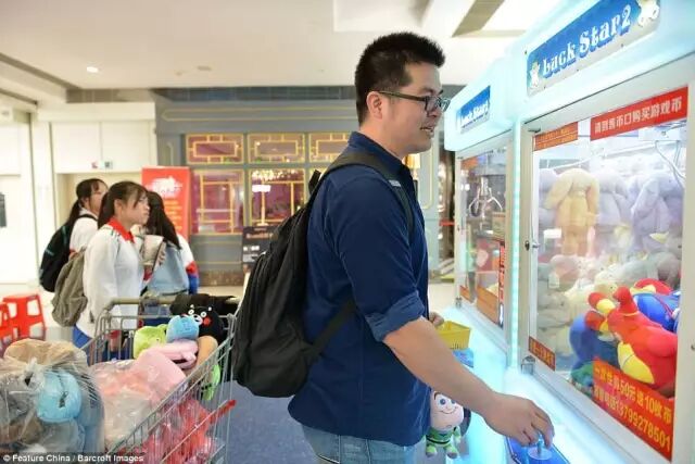 The timid bachelor goes to various shopping centres in Xiamen daily to play claw machines.