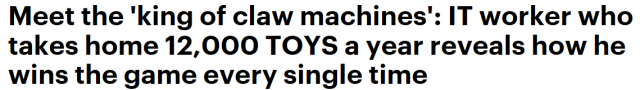 且看“娃娃机之王”:IT工作者一年抓12000个娃娃,揭开其从未失手的秘密