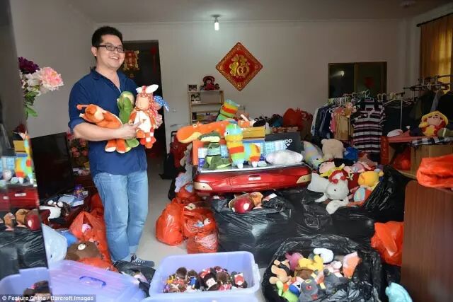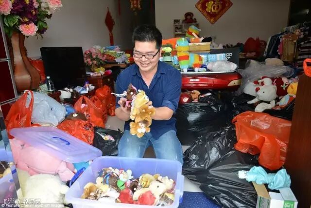 His heartwarming solution was to donate the cuddly items to struggling kids.志通还说,抓来的娃娃把公寓挤得乱糟糟的。他找到了暖心的解决办法,把这些可爱的玩偶捐给患病的孩子们。