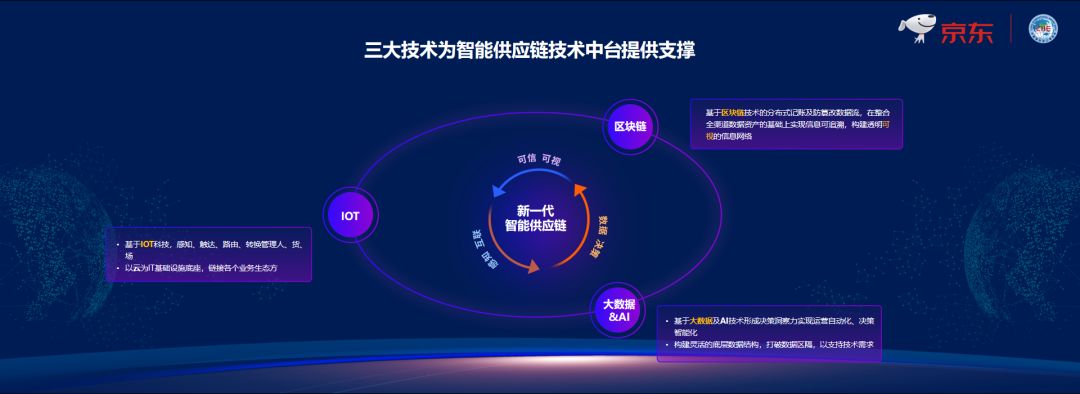 ▲IoT、大数据与AI、区块链三大技术为京东智能供应链保驾护航