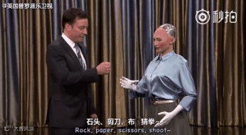 她不光在语言上碾压肥伦,两“人”玩“石头剪刀布”的时候,也赢了……