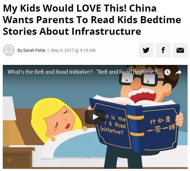 China Daily newspaper is running online videos of an American father telling his daughter bedtime stories about the belt and road as "China's idea which belongs to the world".