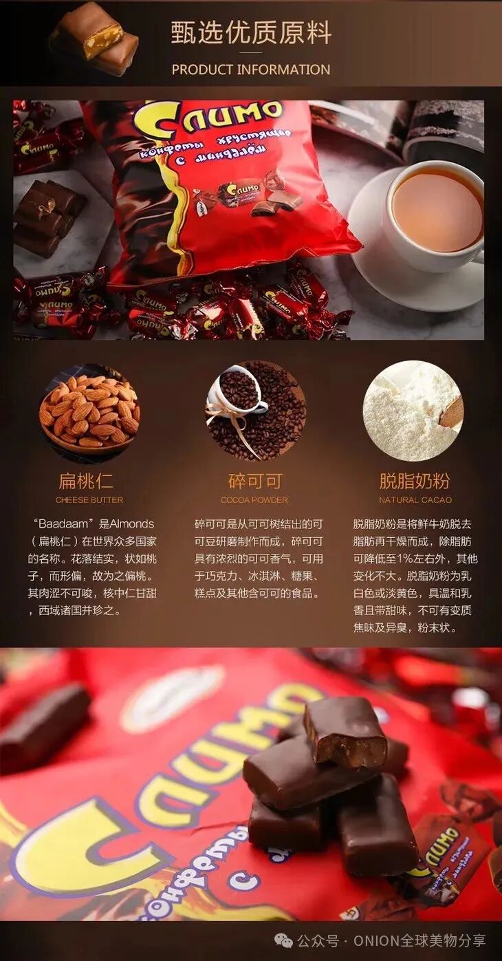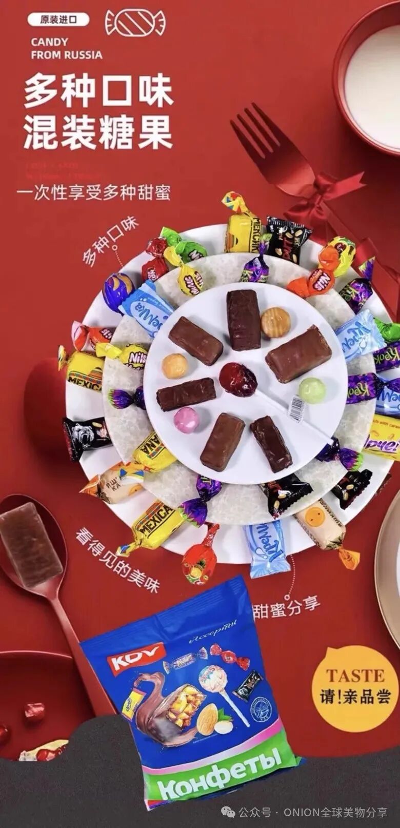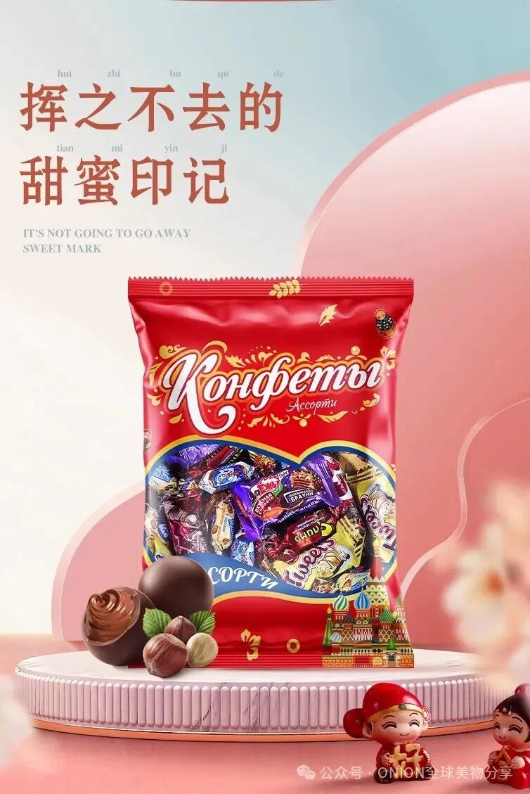俄罗斯糖果普遍偏甜,红皮糖改良了齁甜的本土口味,更加适合中国市场。花生扁桃仁用料足,香甜有嚼劲不粘牙~