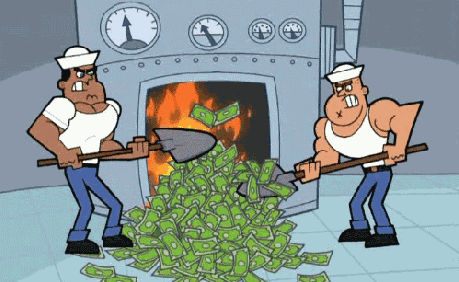 我们中文说人“挥霍”时常说“花钱如流水”,歪果仁可能也是这个思路吧。