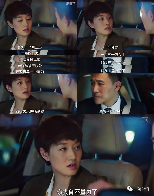 电视剧《我的前半生》中有个情节,罗子君的已婚上司段晓天在一个月黑风高的晚上,抓住她的手对她诉衷肠,想让她做自己的情妇。罗子君只问了他一个问题:你一个月赚多少钱?