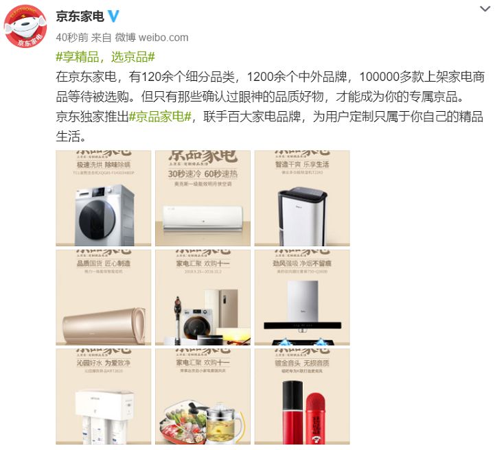 ▲京品家电是京东在十一前夕推出的家电“新物种”