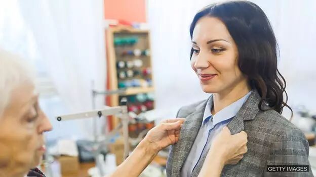 在英语中,搭配“be fitted for”是“试穿,由裁缝或设计师量体裁衣”,后面接衣物的名称。在这里,“fitted 被量体裁衣”是被动语态。请听例句。