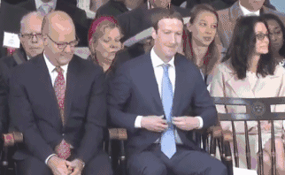 虽然见过大场面,但是开讲前的扎克伯格还是显得很紧张……
