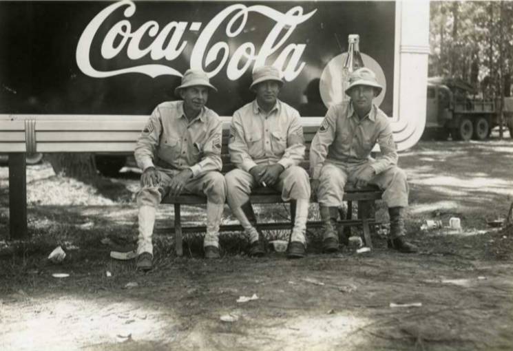 可口可乐风靡全球和美国的崛起是分不开的,尤其是“二战时期”,当时的可口可乐总裁发出指示“争取让每一位士兵在任何地方都能花5分钱买到一瓶可口可乐。(Every man in uniform gets a bottle of Coca-Cola for five cents, wherever he is and whatever it costs the company.)”