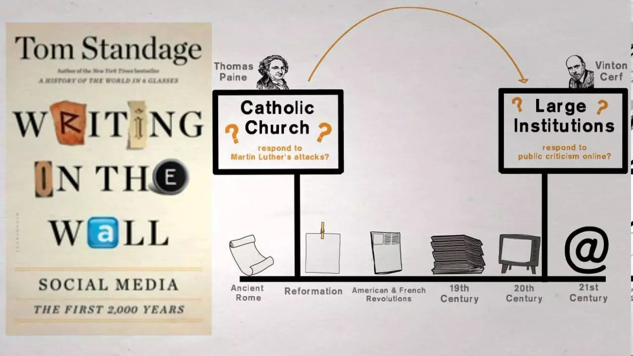 进而又写《从莎草纸到互联网:社交媒体2000年》(Writing on the Wall : Social Media --The First 2,000 Years),讲述从莎草纸信到小册子、咖啡馆、广播、电视、互联网的社交媒体进化之路。