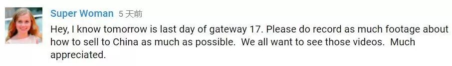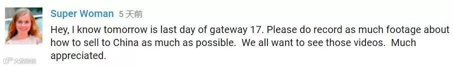 我知道明天是Gateway 17的最后一天了。请再多录一些视频,教我们怎么在中国做生意,我们都想看。谢谢!