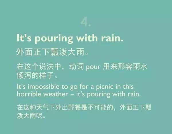 伦敦这座城市常下雨,而一旦天降大雨,英国人一定不会放过这个谈论天气的好机会。学习五种英语表达说“下大雨”。