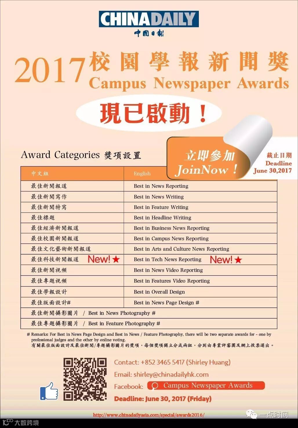 如果你是新闻传播类专业的学生,对新闻媒体行业充满好奇心与兴趣,如果你不甘心当一名宅男宅女,期待一个更新颖有趣、丰富多彩的暑假,就快来参加由中国日报(香港)主办的“2017校园学报新闻奖”吧!