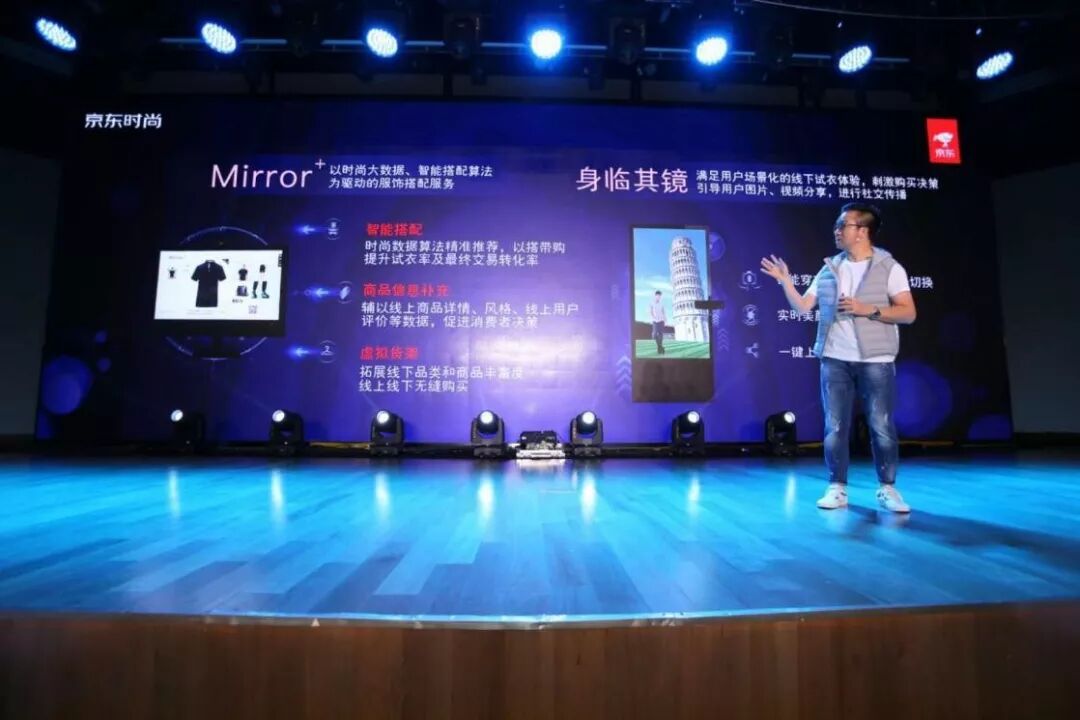 发布会现场,胡胜利以一则黑科技短视频揭开了京东全新升级的三大黑科技——“Mirror+ 智能搭配屏”、“身临其镜”与祖冲之全链路数据平台的神秘面纱。