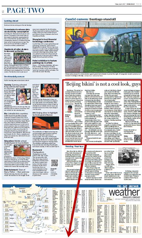 文章节选自 《中国日报》2017.07.14第二版 “'Beijing bikini' is not a cool look, guys ”点击阅读全文