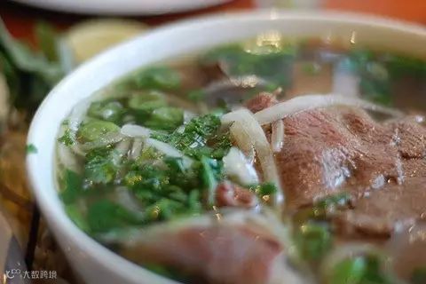 大米做成的河粉一碗,加上几切片牛肉或者鸡丝,配上薄荷、香菜、罗勒等香料。河粉不断不粘,清新爽口,汤底鲜醇热腾腾,你的胃一下子就会温暖起来。