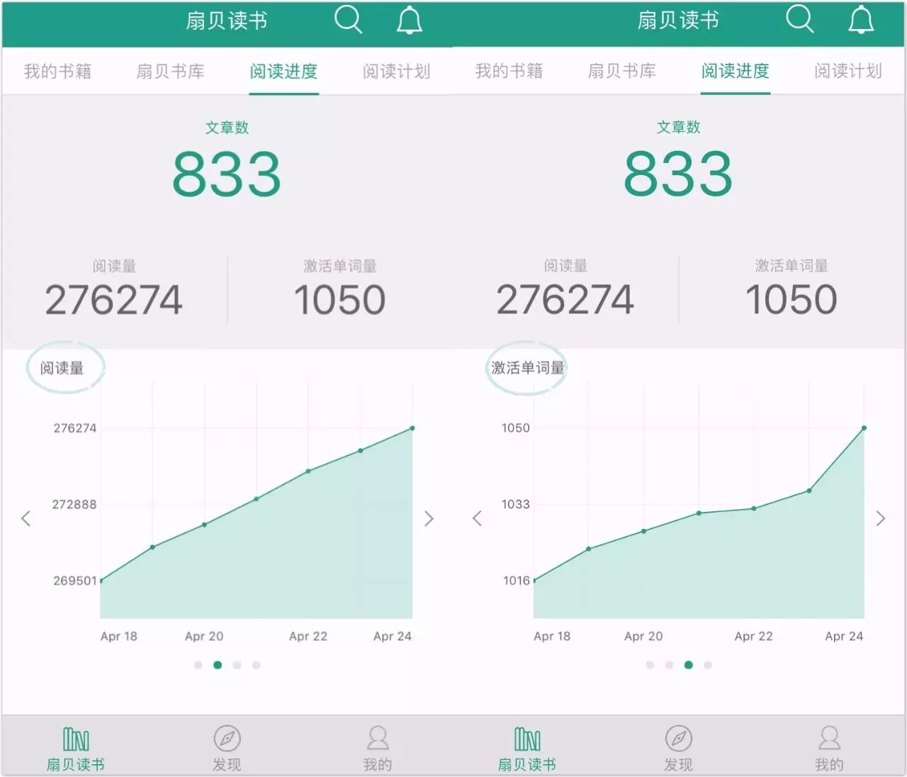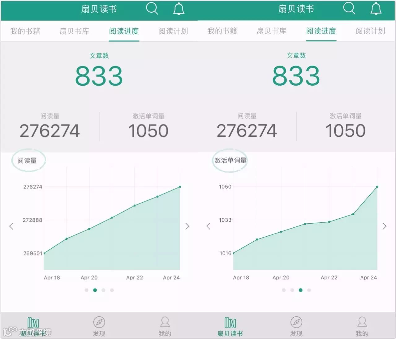 每天单词量和阅读量的进步都看的很清楚