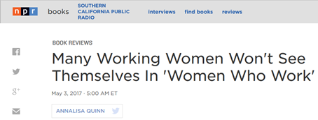美国国家公共电台(NPR)则表示,对于真正的职业女性来说,在这本书里是看不到自己影子的。文章更是表示,这本书读起来“好像在嚼一颗有香味的棉球”(feels like eating scented cotton balls)。