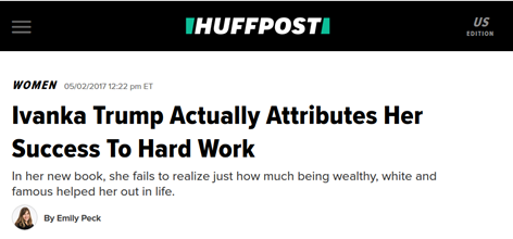 《赫芬顿邮报》:伊万卡还真以为成功是自己努力得来的