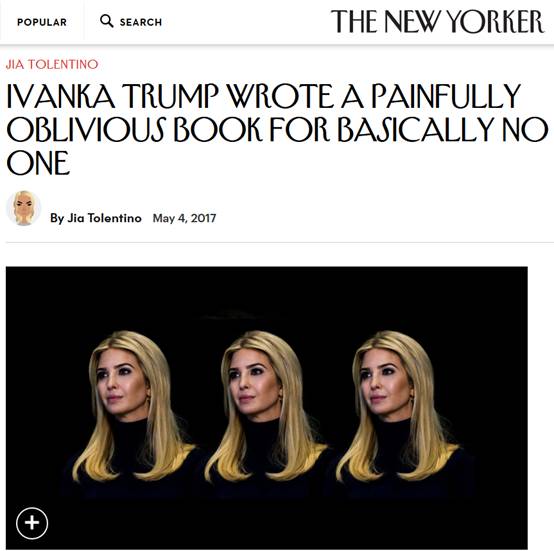 作者在导语中接着说道,在伊万卡的新书里,她并没有认识到她的富有,白人身份和知名度才是她成功的推手。