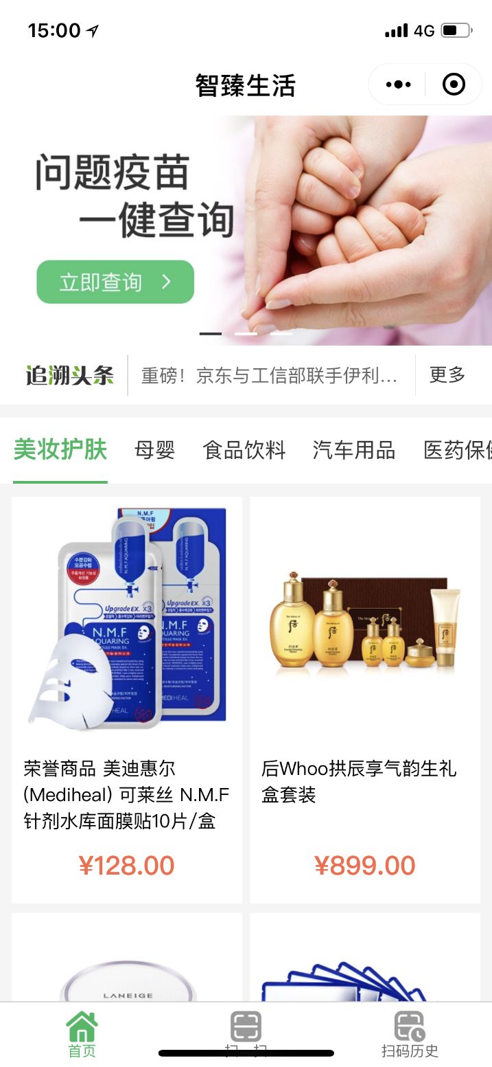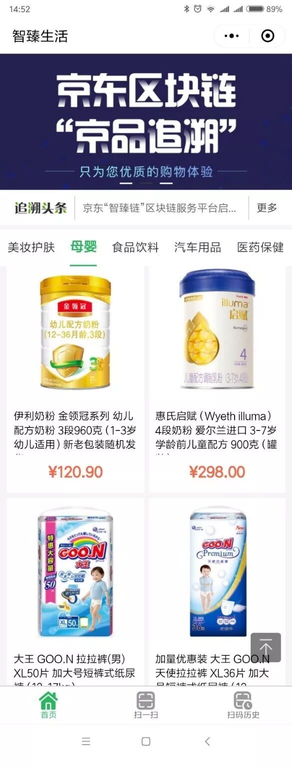 京东可溯源商品已经覆盖包括美妆护肤、母婴、食品、生鲜、酒饮、家纺、医疗保健等全品类的上万款商品,这些商品均已上线到“智臻生活”小程序中。