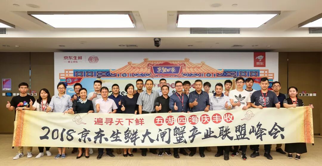 ▲京东生鲜大闸蟹产业联盟2.0合影