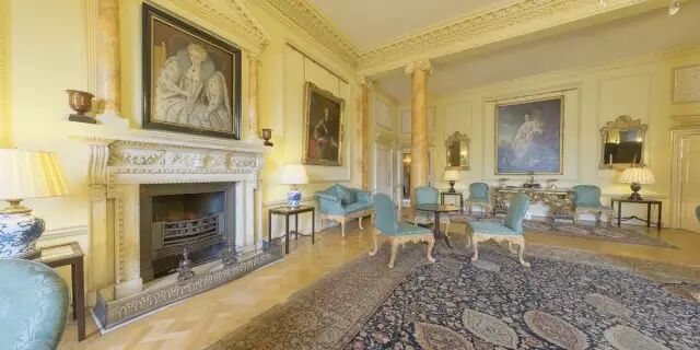 其内部有精雕细琢的吊顶,挂满壁饰、勋章和画作。