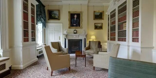 书房壁炉上方的墙上挂着撒切尔夫人像: