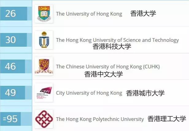 相比之下,日本和韩国分别有5所进入百强,新加坡有2所。