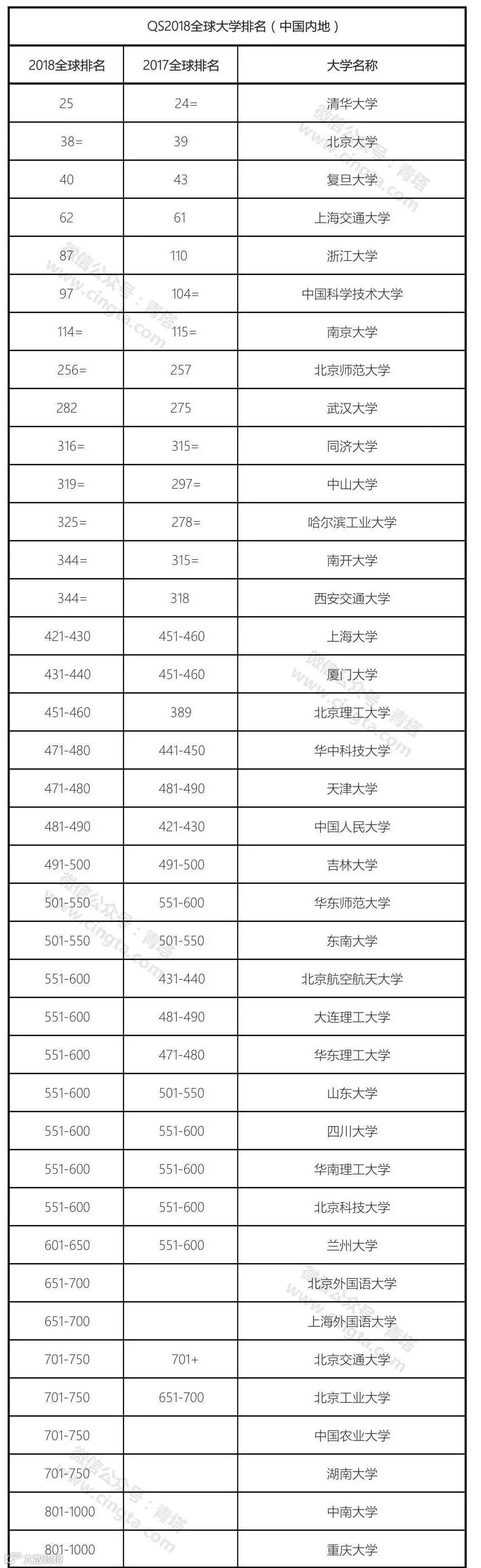 以下为进入QS榜单的所有中国内地高校名单↓↓