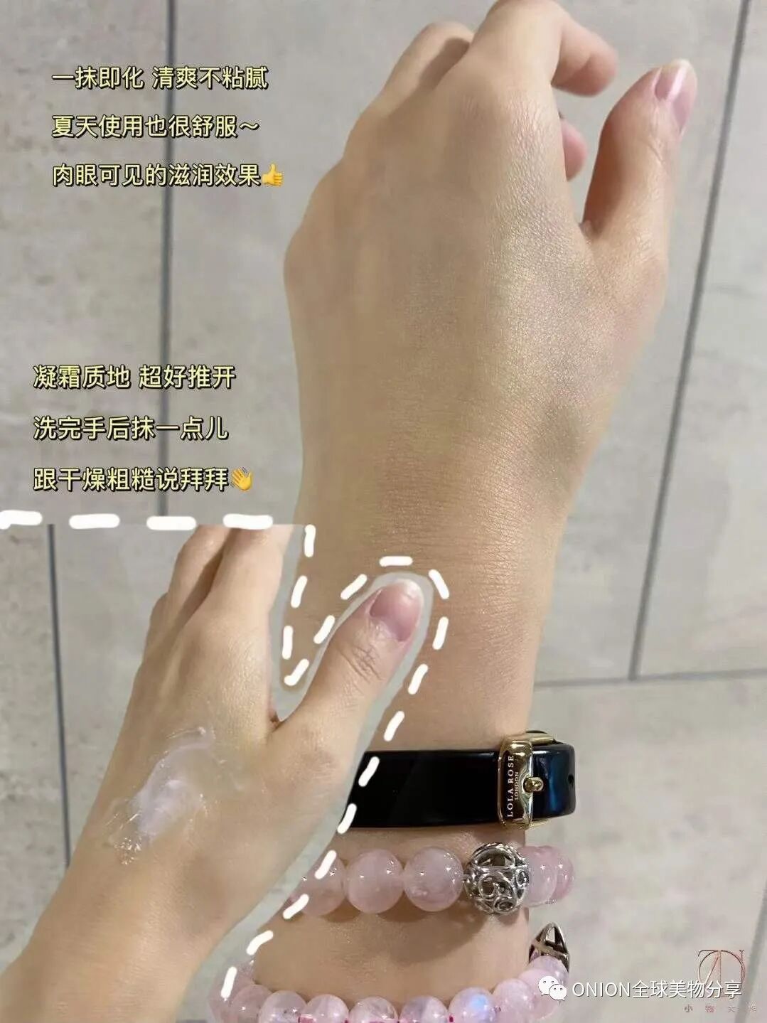质地上也有一点点像牙膏,滋润度适中,吸收性也很好,典型的一抹化水,涂开之后,手上是很清爽的水感质地