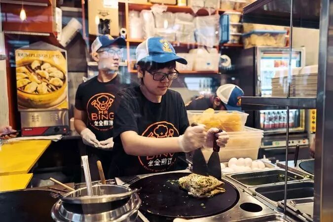这个在中国街头常见的小吃,如今已经火到了美国纽约的大街上,并且极受当地人追捧,在年轻人中的知名度不亚于披萨和墨西哥煎玉米卷(tacos)。