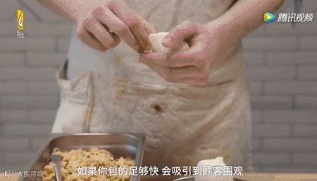 店里的外籍员工都在认真学包包子,因为会包包子能让你有明星光环!(If you can make a bun, you're kind of a super star.)