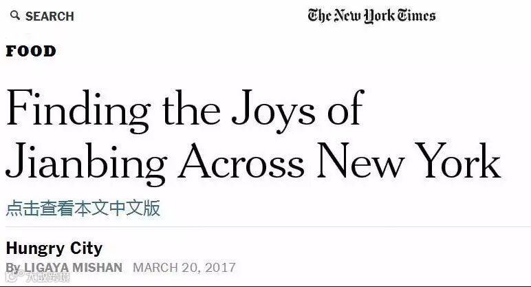 3月20日,《纽约时报》美食专栏发表了一篇文章,专门介绍最近在纽约走红的中国煎饼。