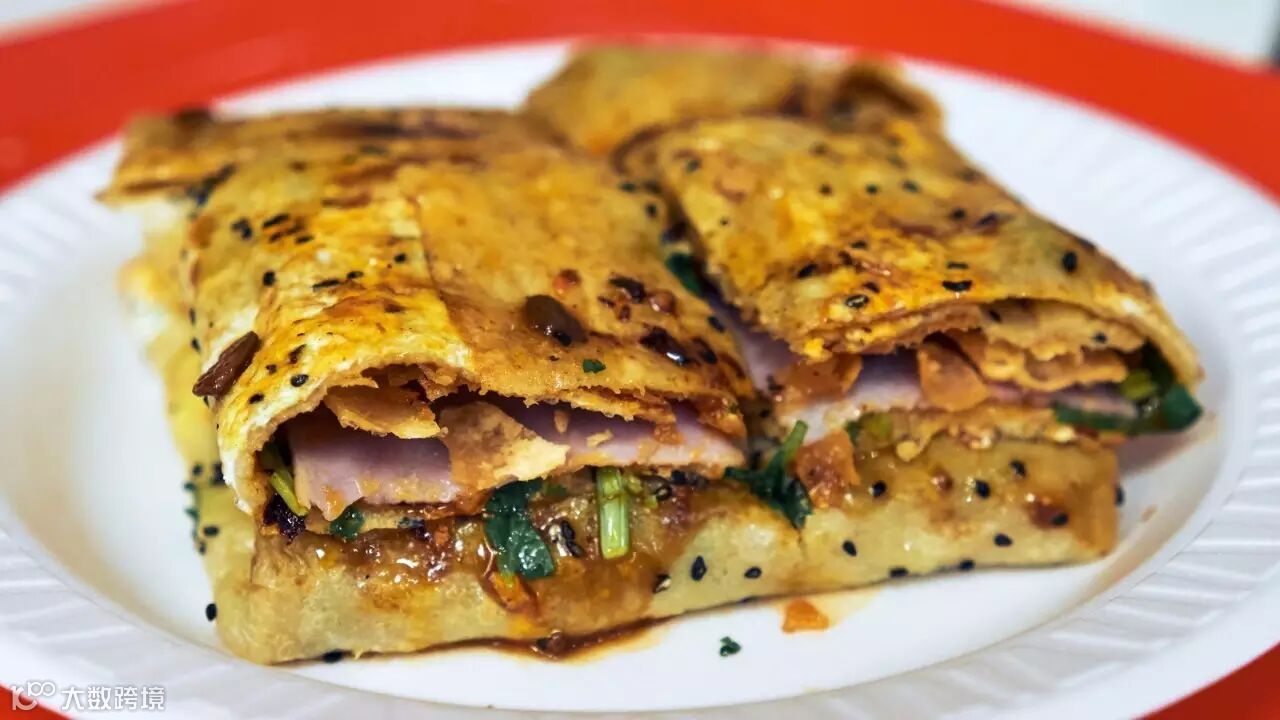 我们来看看这些诱人的文字,顺便学习一下,以后就知道怎么用英语跟国际友人夸煎饼了……