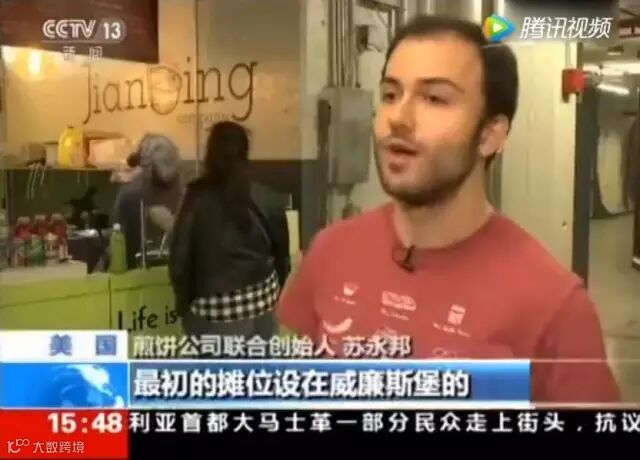 于是,去年4月份,他在美国纽约开了自己的“煎饼摊子”。
