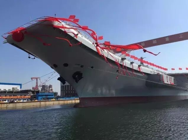 China's first home-built aircraft carrier 001A hit the water in Dalian shipyard of the China Shipbuilding Industry Corp on Wednesday morning.