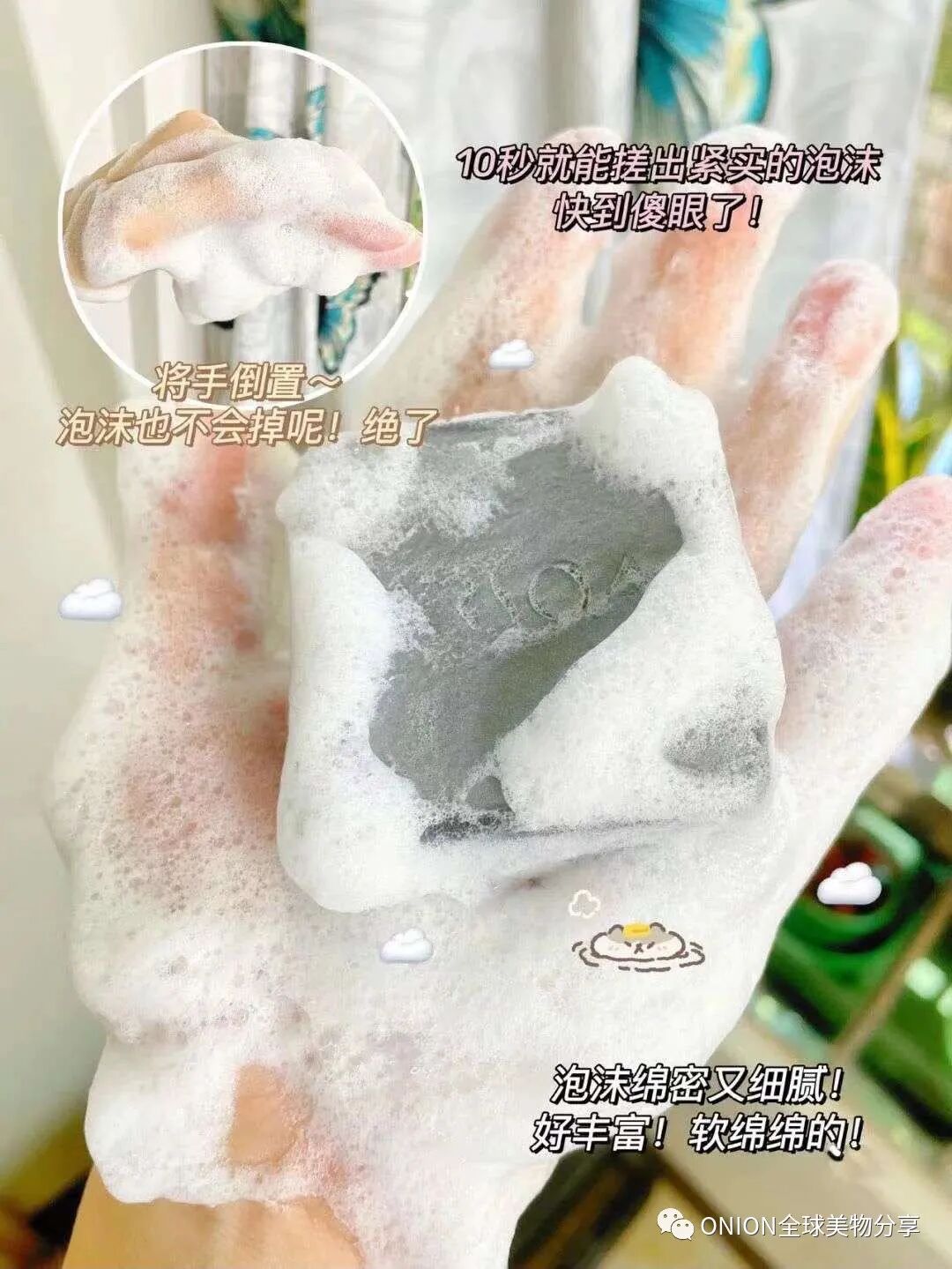 泡沫质量也是鉴定洁面皂好坏的重要一部分,小黑皂的泡沫具备绵密度、弹力度、浓度的最佳平衡状态,少量揉搓就可打出细致有弹性的丰盈泡沫
