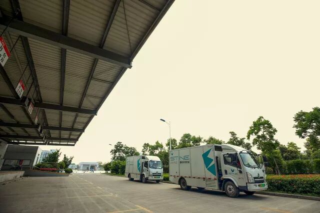 ▲ 氢能源物流车驶离京东物流上海亚洲一号物流园区