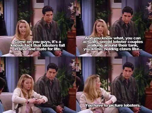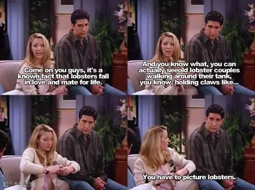 在《老友记》第四季21集中,Phoebe曾用“he is her lobster”来形容Ross和Rachel他们的关系,他们注定像一对龙虾一样,手牵手走完一生。